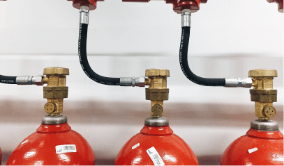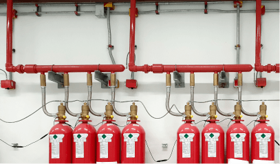 Clean agent fire suppression system designed for rapid discharge in enclosed spaces such as server rooms, protecting equipment without water damage.