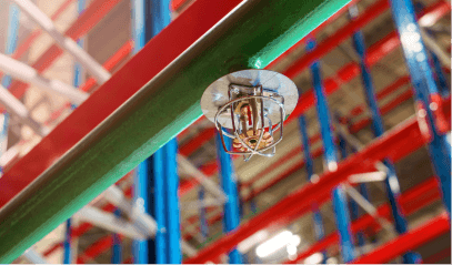 Automated water-based fire suppression system activated by heat, commonly used in industrial buildings, warehouses and commercial buildings.